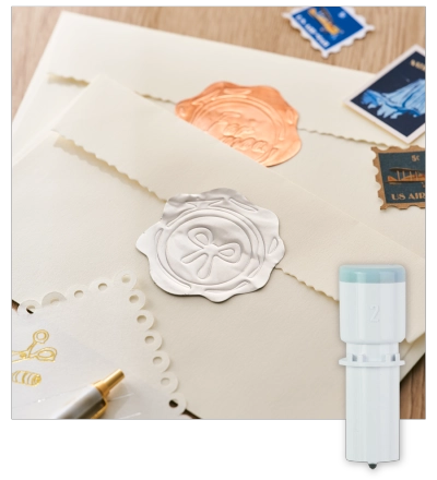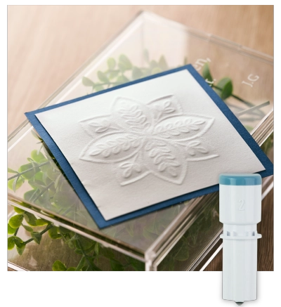 エンボスツールの種類とサイズを教えてください エンボスツールは2種類あります。 エンボスツール ワイド ペン先:3.0 mm丸みのある描画に最適です。 エンボスツール ファイン ペン先:1.0 mm細かいデザインに最適です。