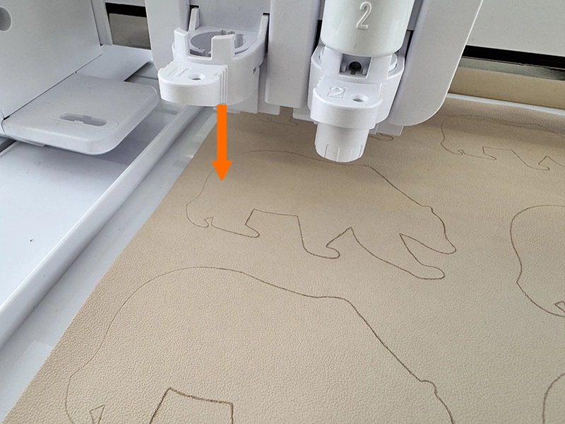 カービングが薄い箇所で素材の高さ検出を行うことでレザーカービングナイフの位置を下げ、デザイン全体を改めて深く削ります。