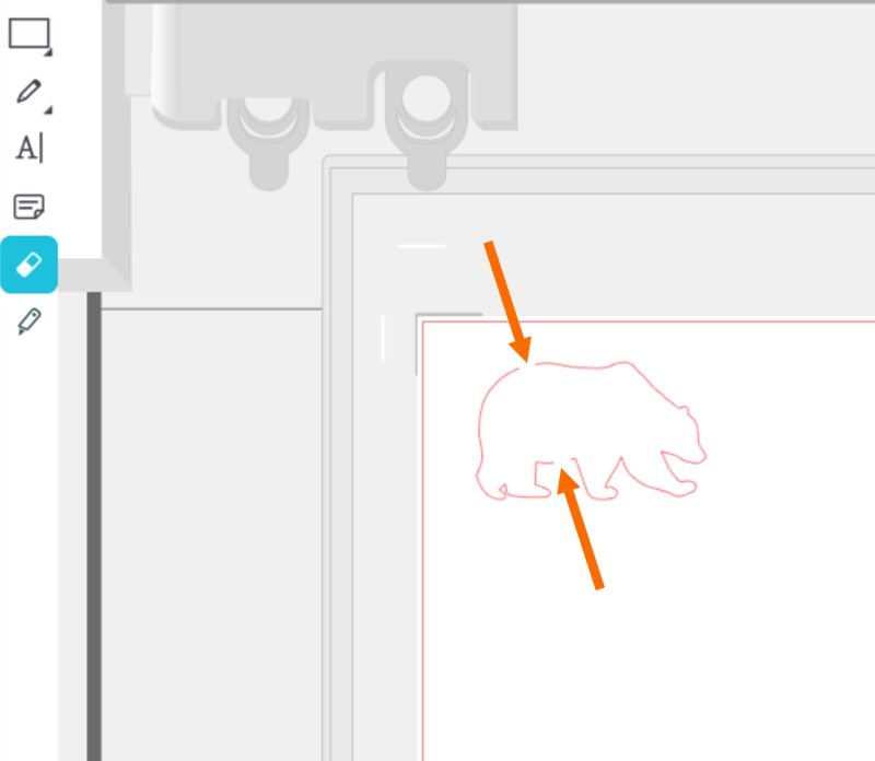 3. 仕上げを行いたい部分を消しゴムツールでドラッグし、線を切り離します。