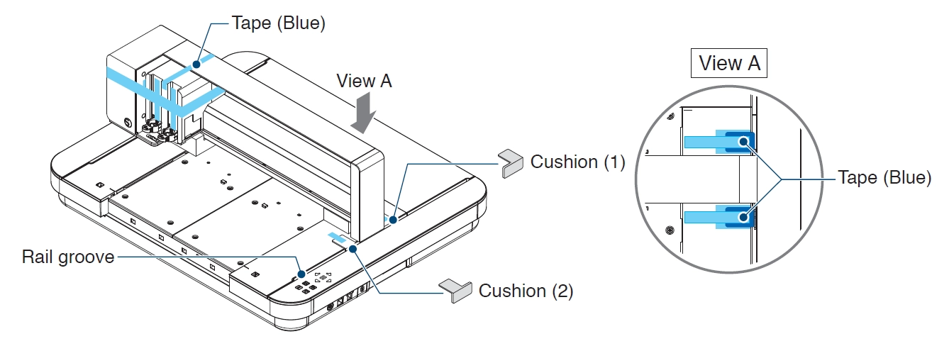 緩衝材を取り外す際にレール溝に落とさないよう注意してください。