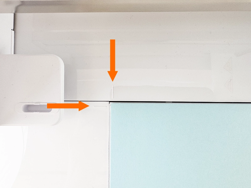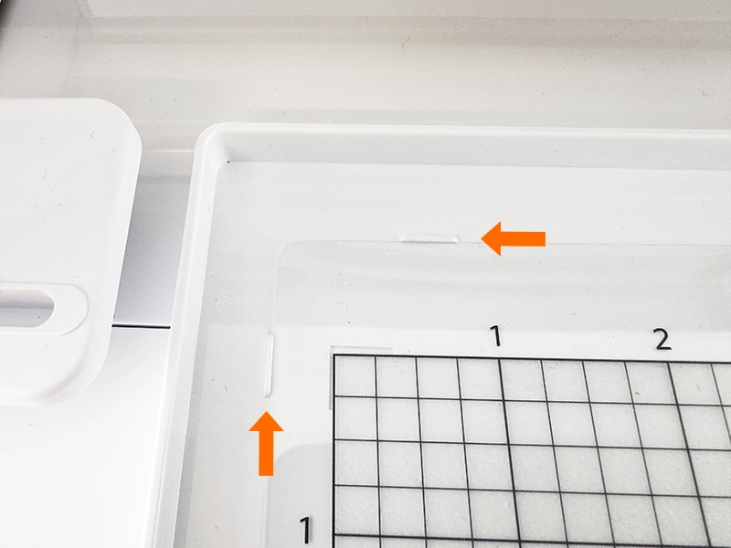 5. カッティング用台紙をセットする場合は左側と上部のリブに合わせてセットします。
