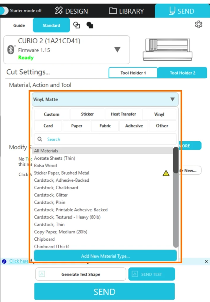 カッターの刃出し量をSilhouette Studioで設定すると、設定した数値にカッティングマシンが自動的に変更します。