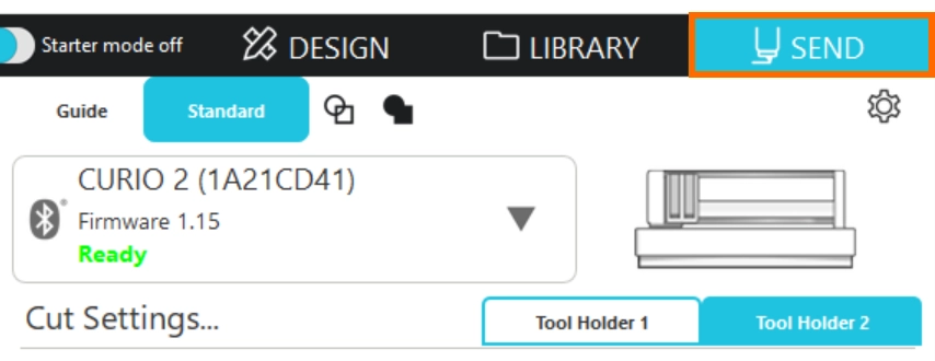 1. Silhouette Studioを起動し、[送信]パネルを開きます。
