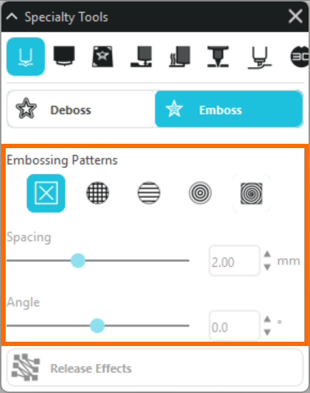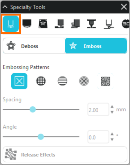 2. [特殊ツールパネル]の[エンボス/デボス]をクリックします。