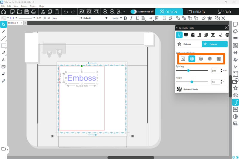 4. デザインをクリックし、エンボスのパターンを選択します。