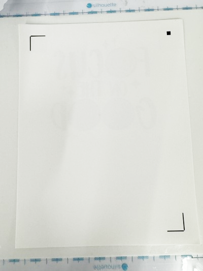 10. 静電テーブルにエンボス用台紙をセットし、エンボス用台紙の右上を原点にしてメディアを裏返して貼り付けます。