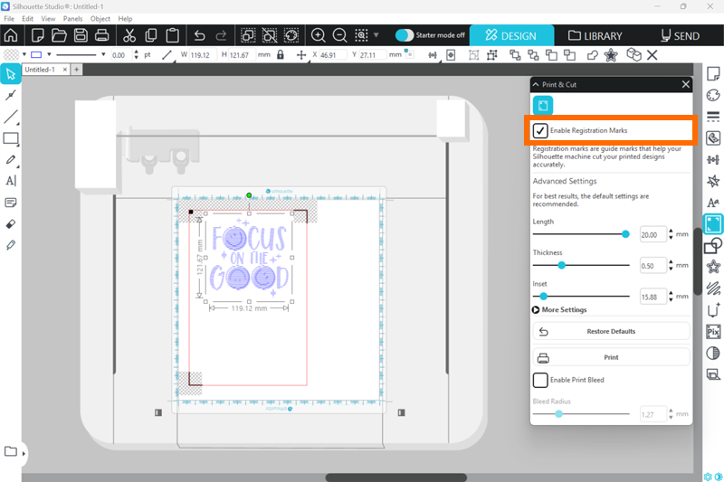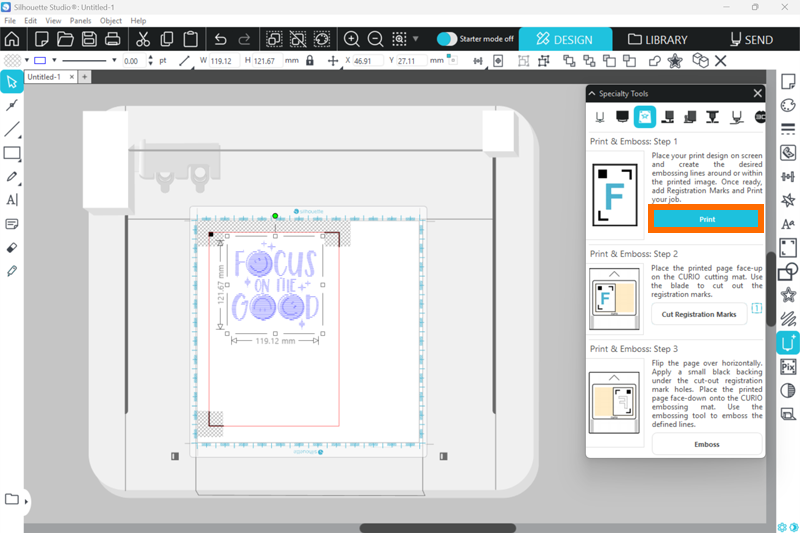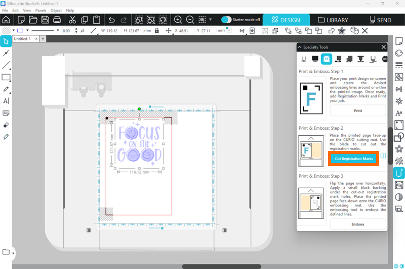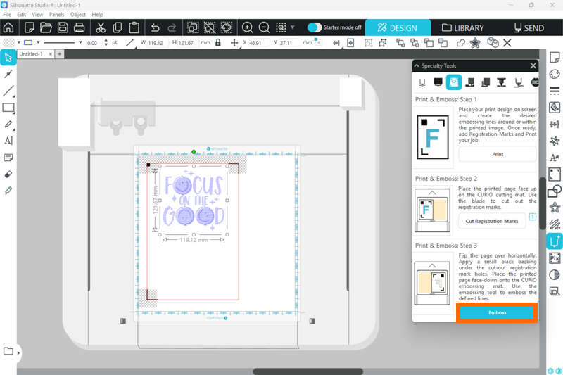 1. Silhouette Studioでエンボスを行うデザインを作成します。
