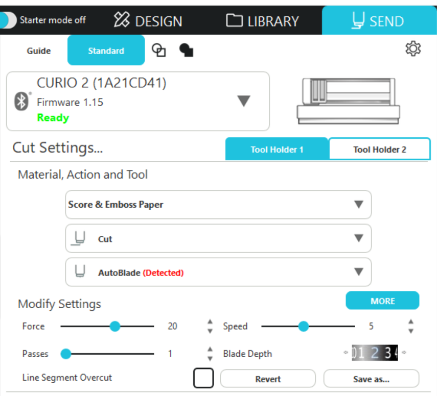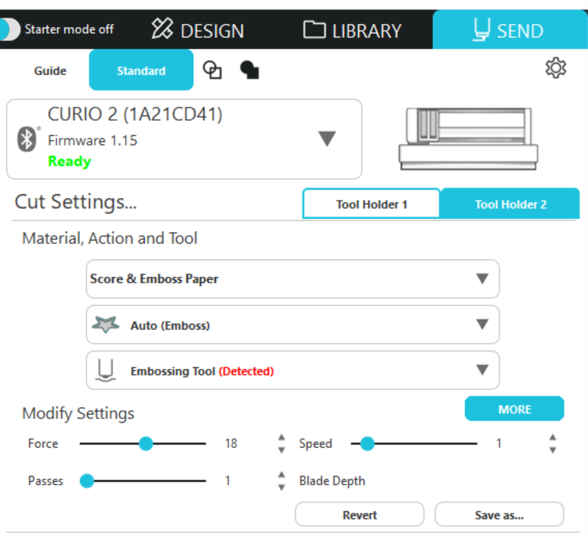 プリント&エンボス加工はCURIO2でのみご利用いただける機能です。CAMEO5ではご利用いただくことができませんのでご注意ください。