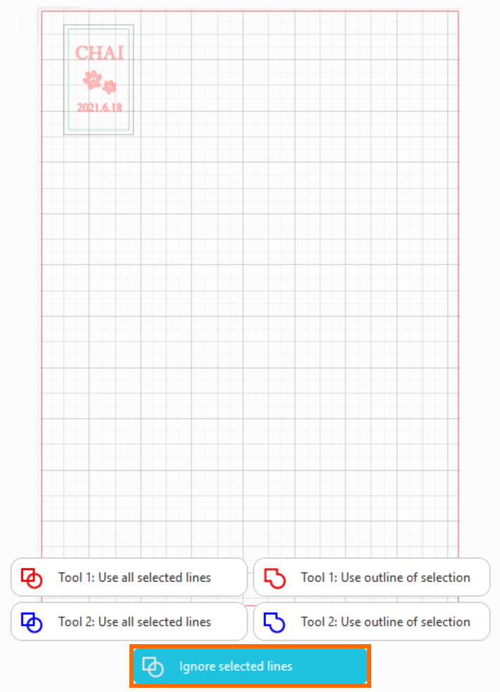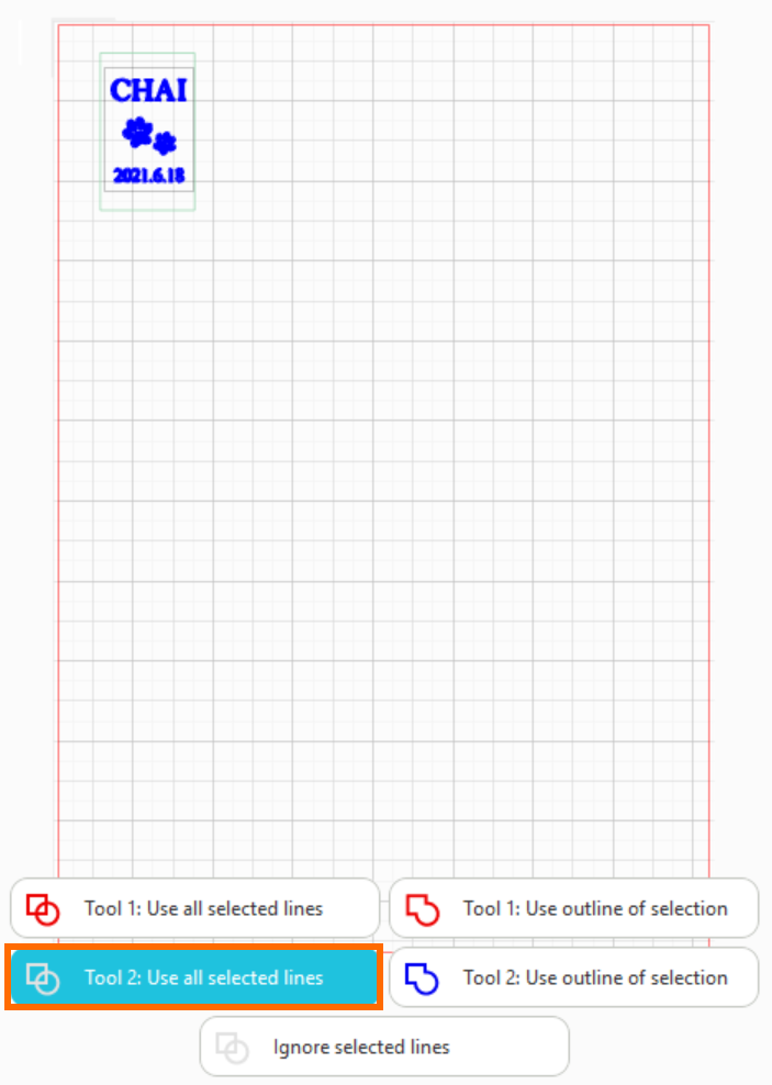 9. 全てのラインを選択して「選択した線を無視」をクリックし、その後彫刻用のデザインだけを選択して「選択したすべての線を使用(青)」をクリックします。