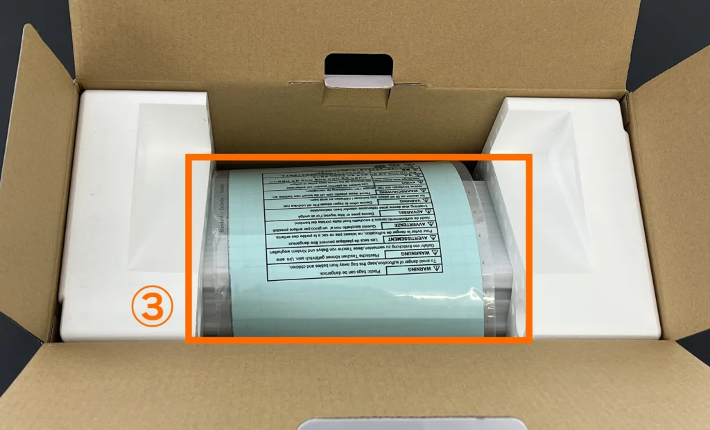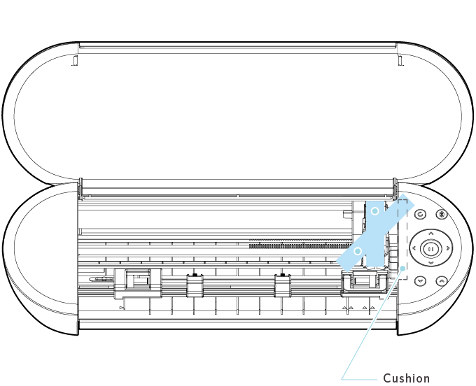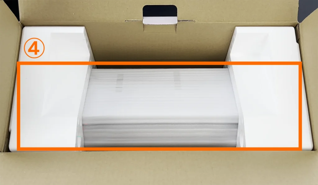 2. 各パーツを固定しているテープ(青色)と緩衝材を取り外します。