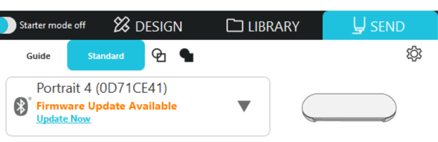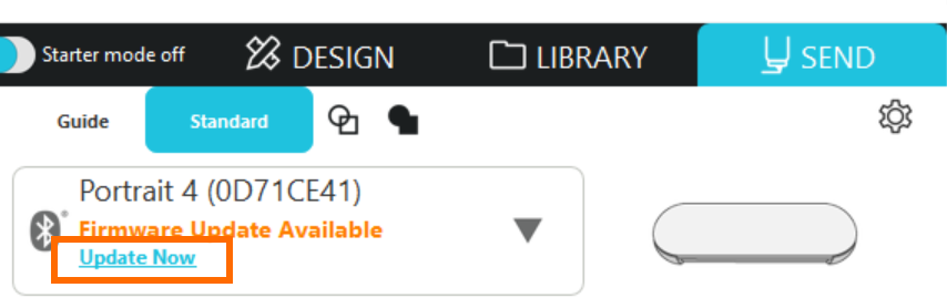 Silhouette Studioの[送信]パネルに更新可能なファームウェアのメッセージが表示された時は、下記の手順に従ってアップデートを行ってください。