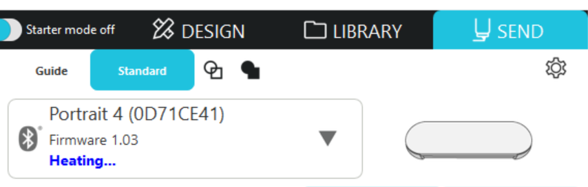 6. マシンのステータスが[温めています…]から[レディ]または[メディアセット中]と表示されたら、ヒートペンの準備完了です。