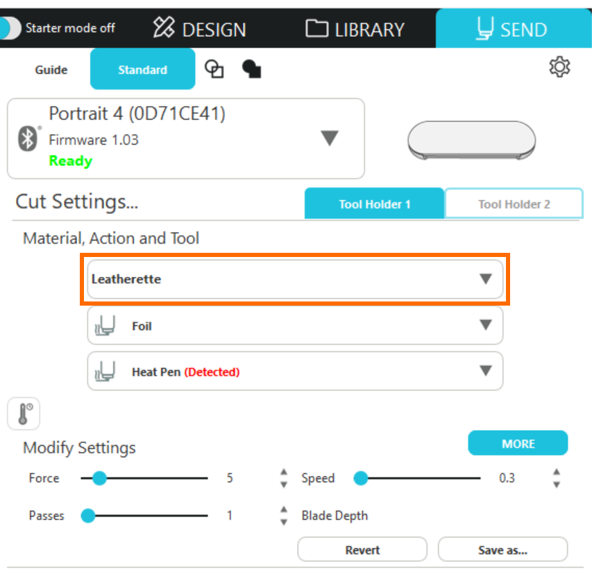 7. メディアタイプから[合成皮革]を選択します。