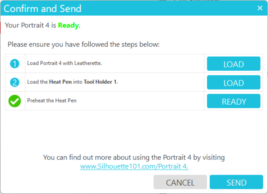 メディアをロードしたか、ヒートペンをセットしたか、余熱が[レディ]になっているか確認し、[送信]をクリックすると箔押しが開始されます。