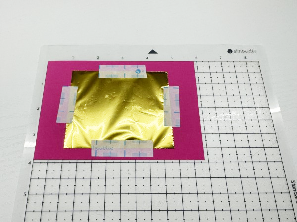 4. 箔の四辺をマスキングテープでしっかりと固定します。