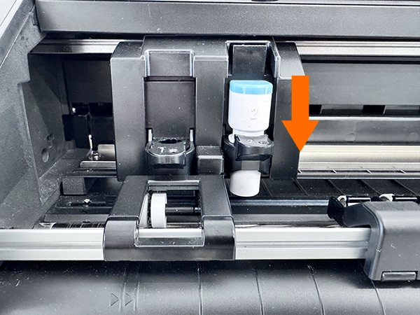 3. ロックレバーを奥に押し戻してロックします。完全にロックされると確認穴が塞がります。