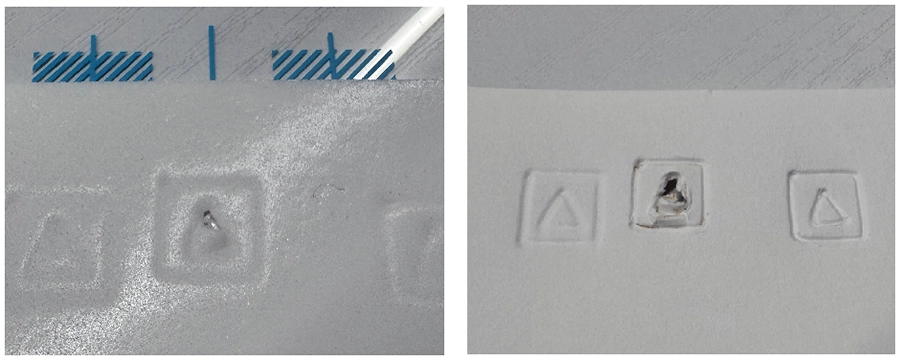 9. エンボスの場合は素材を裏返し(デボスの場合はそのまま)テスト結果を確認します。