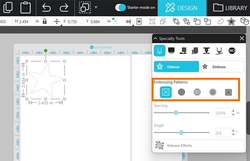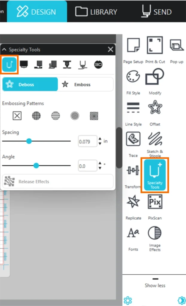 7. デザインをクリックし、デボスまたはエンボスのパターンを選択します。