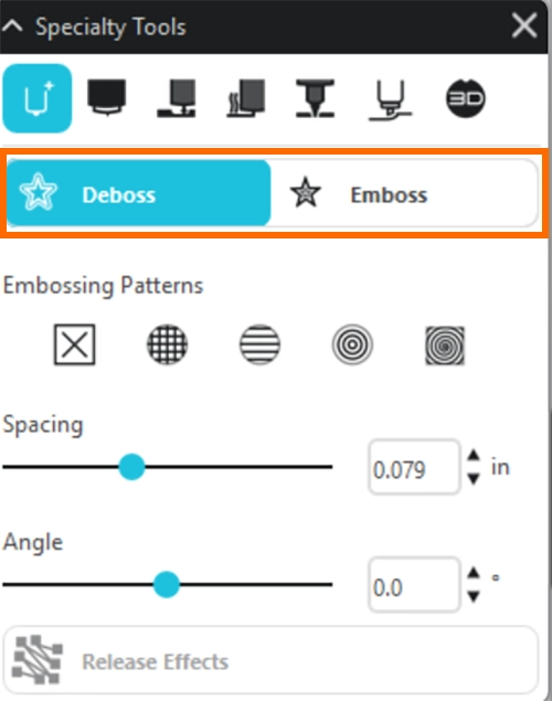 5. [特殊ツールパネル]の[エンボス/デボス]のアイコンをクリックします。