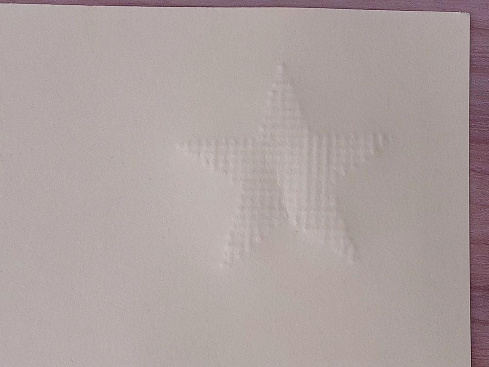 14. エンボスの場合は素材を裏返し(デボスの場合はそのまま)結果を確認します。