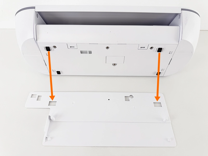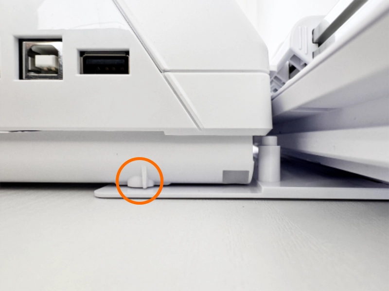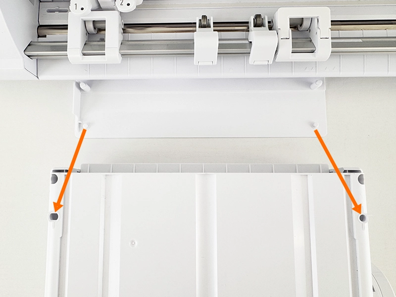 1. 位置決めプレートの四角い穴にカッティングマシンの脚を合わせて接続します。
