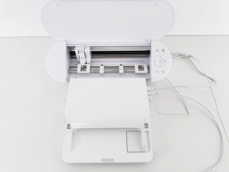 3. カッティングマシンの電源ケーブルにオートシートフィーダーの電源ケーブルを接続します。