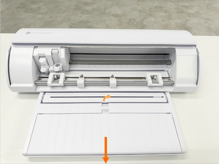 3. メディアガイドをカチッと音がするまで開き、トレーを手前にスライドさせます。