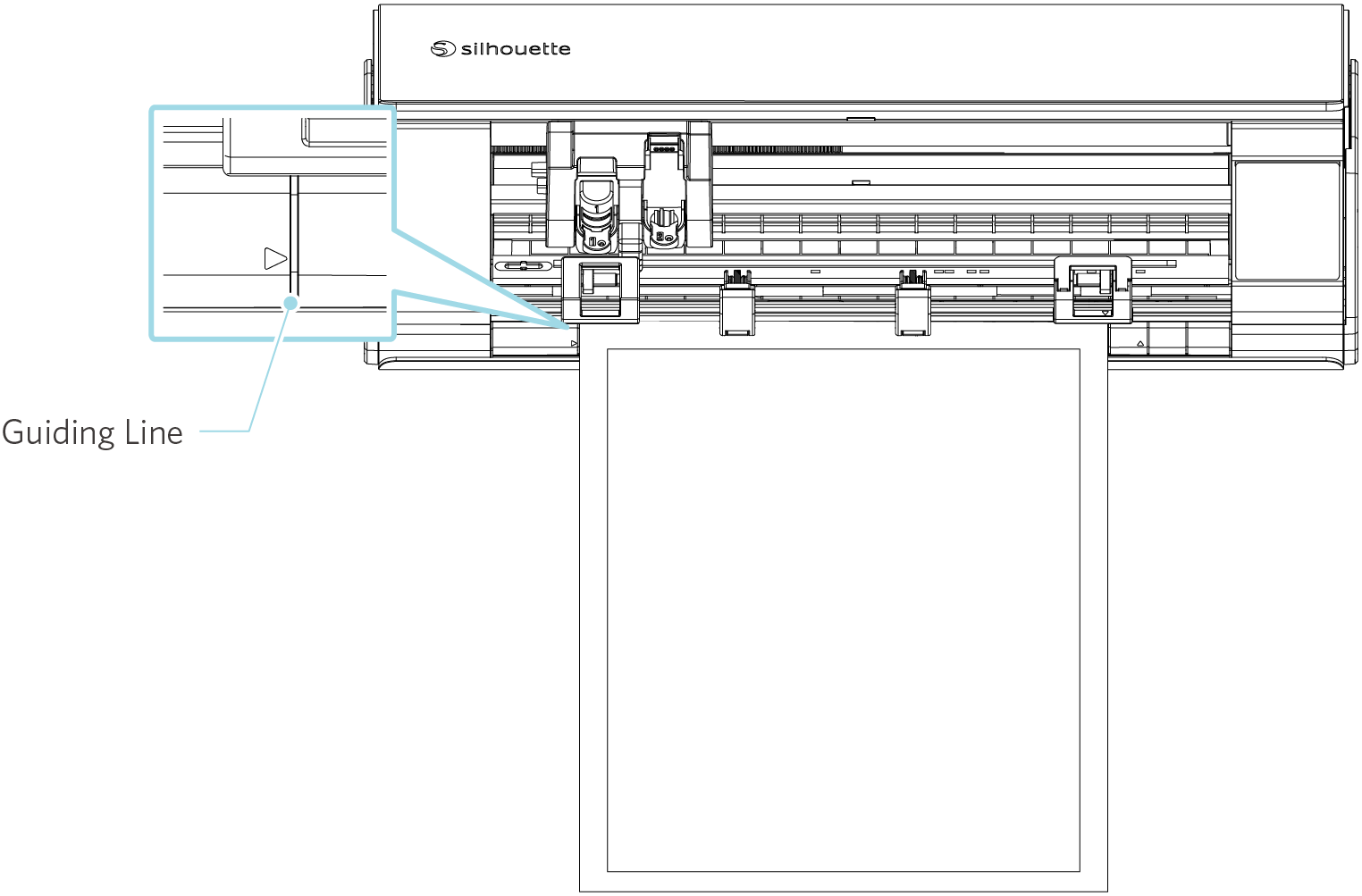4. メディアの左端をフロントパネルのガイドラインに合わせ、先端をピンチローラーに突き当てます。