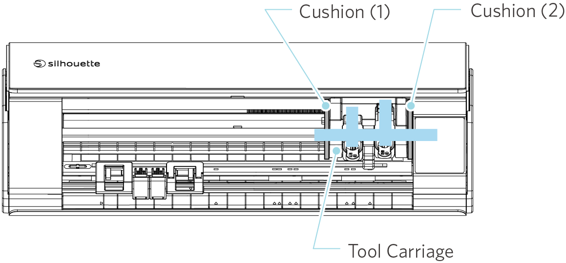 緩衝材①を取り外した後、ツールキャリッジを少し左に移動させてから、残りの緩衝材②を取り外してください。