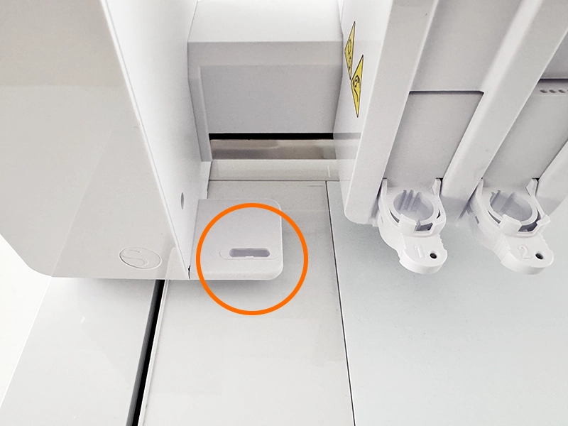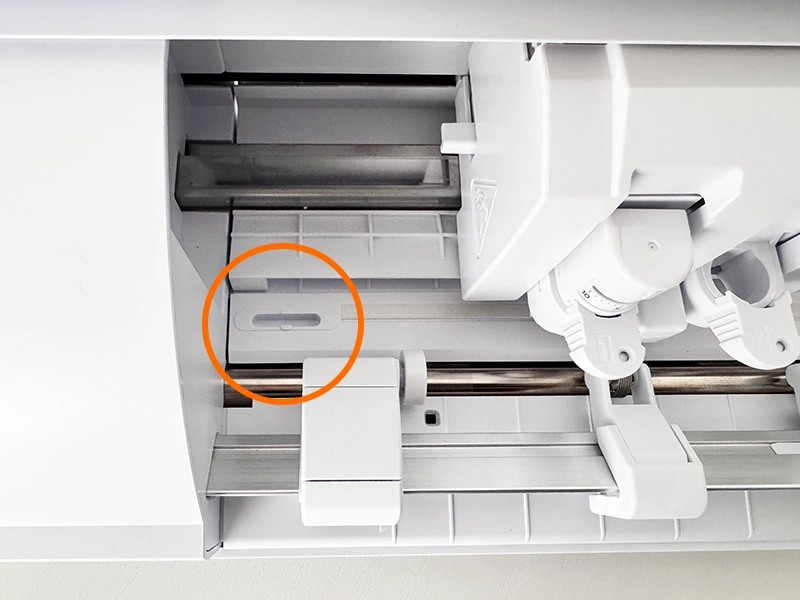 1. マシンの電源を切り、キャリッジを右側にゆっくり移動します。
