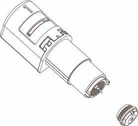 3. 刃先キャップの突起部分に刃先キャップ取り外しツールの凹みを合わせます。 刃先キャップ取り外しツールを反時計方向に回してキャップを緩め、取り外します。