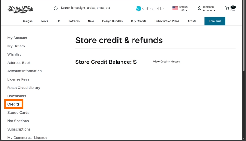 8. クレジットブーストを購入して追加された残高は、マイアカウントの[Credits]タブでご確認いただけます。