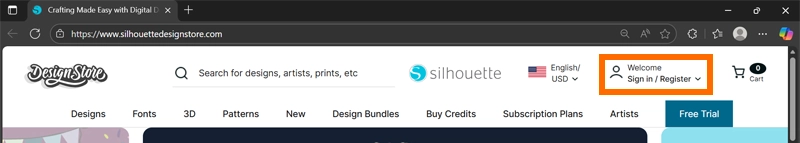 1. ブラウザでSilhouette Design Storeを開き、Silhouette アカウントでサインインします。