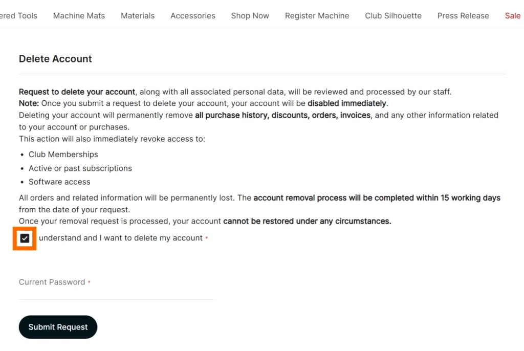シルエットアカウントはシルエットアメリカのWEBサイト、またはデザインストアで削除することができます。