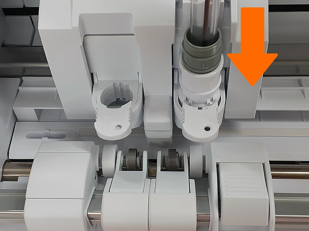 5. ストッパーを外し、ペンアダプターをマシンにセットしていきます。
