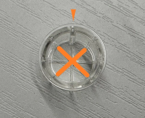 ストッパーのリブ(凸部分)に対して斜めにペンをセットした場合