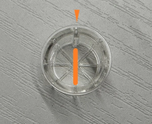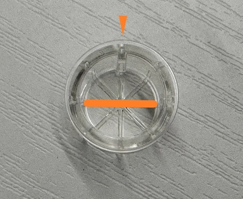 ストッパーのリブ(凸部分)に対して平行にペンをセットした場合