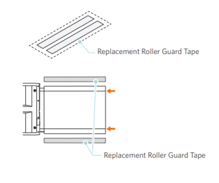 4. 交換用のローラーガードテープを左右のラインに沿って貼り付けます。