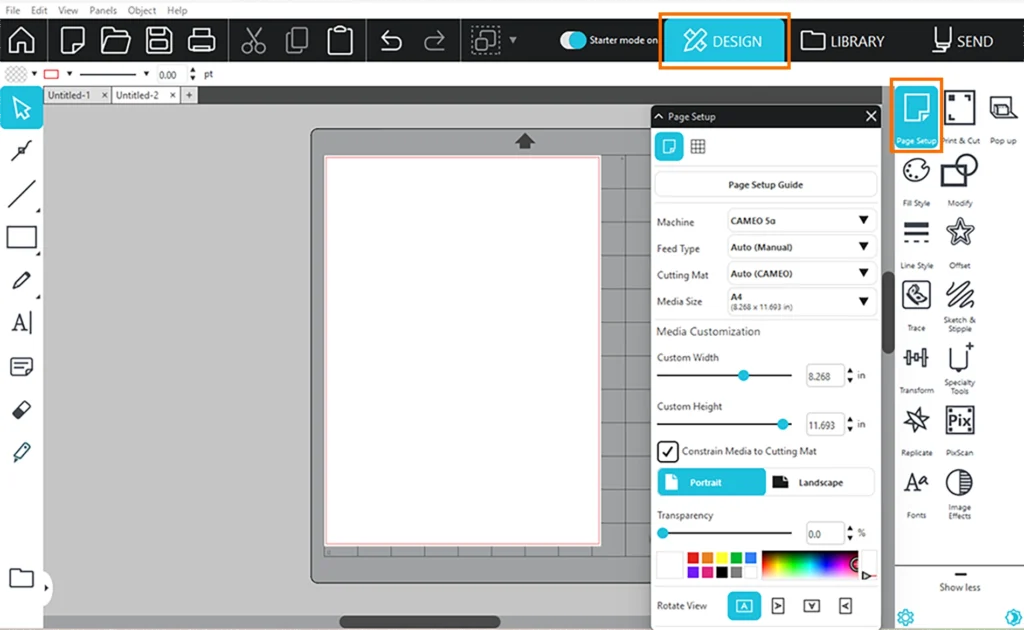 1. [デザイン]タブの[ページ設定]パネルを選択します。