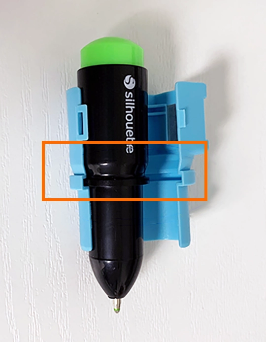 シルエット専用水性ボールペンをCAMEO4以降のCAMEOシリーズ、Portrait3以降のPortraitシリーズのマシンでご利用の場合は、ツールアダプターを使ってマシンへセットしてください。
