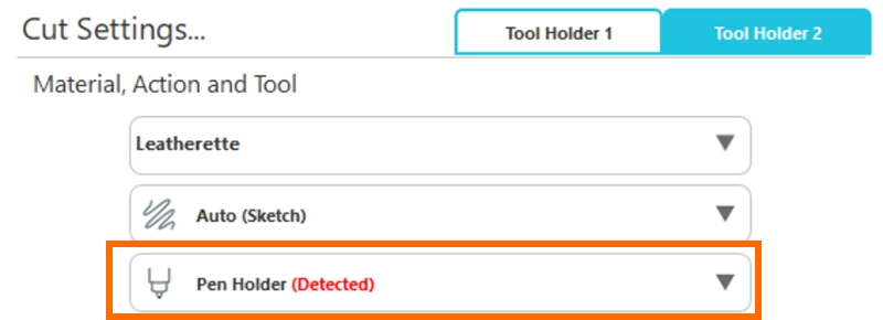 ツールアダプターをマシンにセットしている状態であれば、ツールに「ペン」が自動で選択されます。