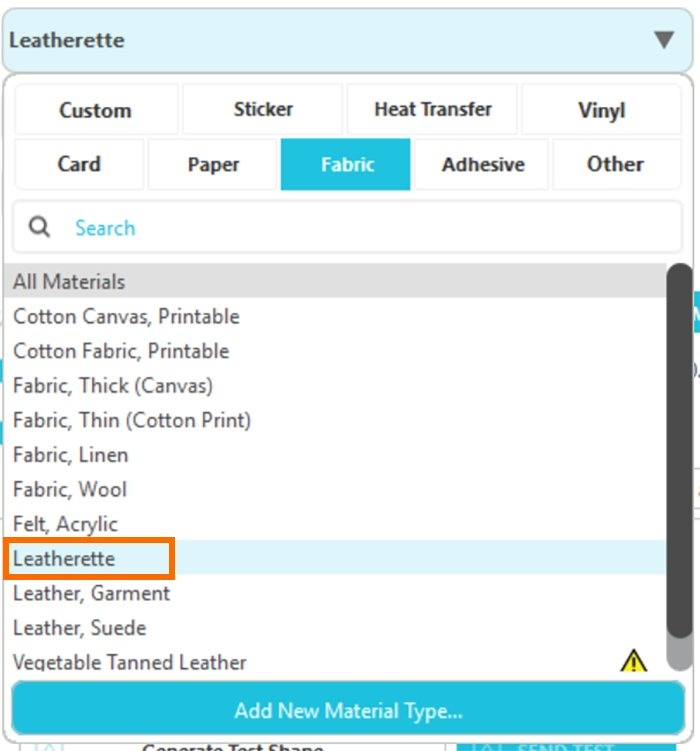 「合成皮革」を選択すると基準の設定値が表示されます。