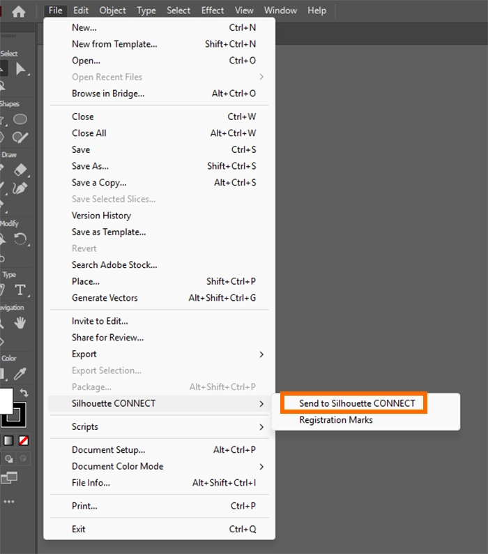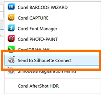 3. IllustratorまたはCorel DRAWで作成したデザインを、Silhouette Connectに送信します。