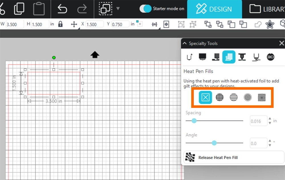 線の上をヒートペンがなぞることでデザインを塗りつぶすため、マシンにデータを送信し実際の箔押しの密度を確認した上で、追加した線の間隔やパターンなどを調整してください。