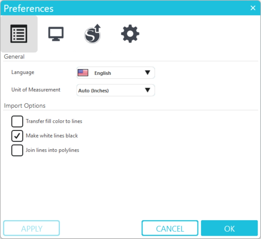 Silhouette Connectの言語を変更できますか? Silhouette Connectで使用する言語は環境設定メニューで変更できます。 1. ファイルメニューで[環境設定]をクリックします。 2. 一般タブを開き、言語を変更します。 3. [OK]をクリックして環境設定メニューを閉じると、言語が変更されて表示されます。