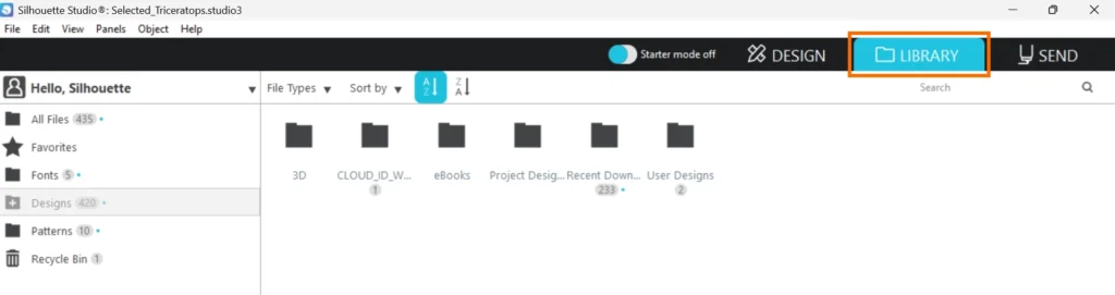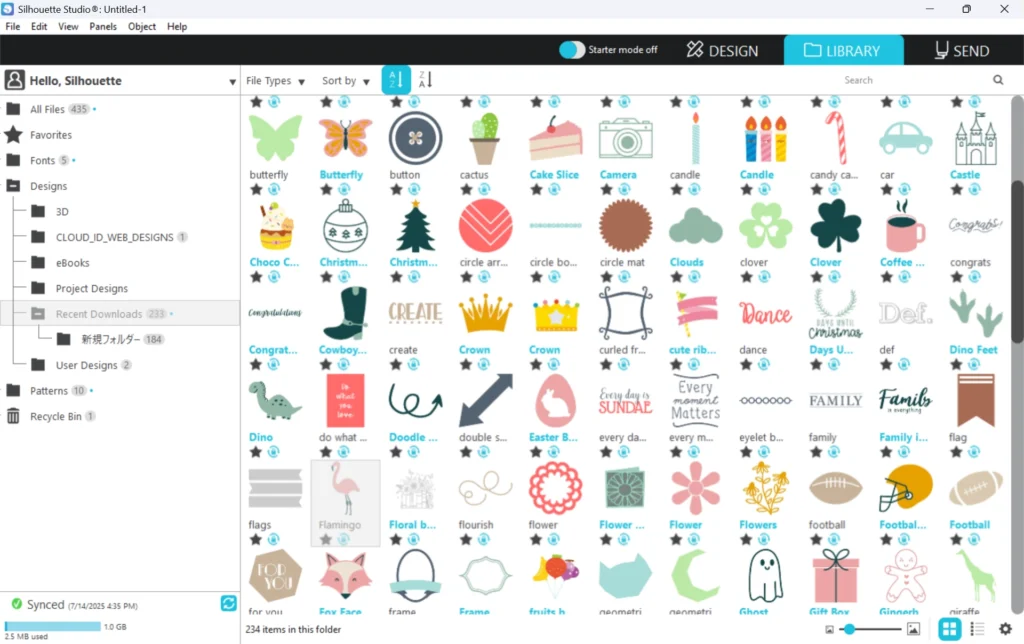 ライブラリのデザインを使用する 1. 画面右上の[ライブラリ]タブをクリックします。 2. ライブラリ内のフォルダを開き、デザインをダブルクリックします。 3. ワークスペースにデザインが表示されます。必要に応じて、デザインをドラッグし位置を変更することができます。