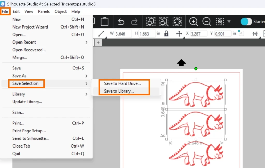 作成したデザインの選択した範囲のみを、ライブラリまたはパソコンに保存することができます。