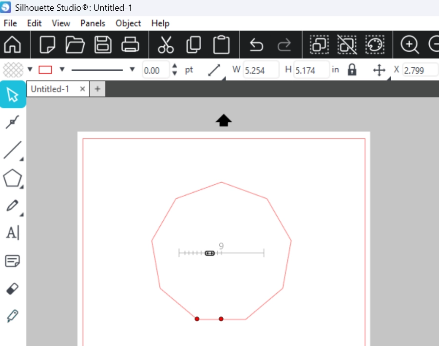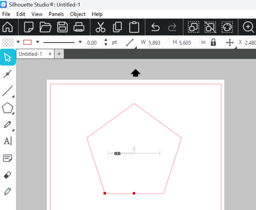 初期設定の辺の数は5ですが、中央のスライダーバーで辺の数を増やしたり減らしたりして、三角形などの異なる図形を作成できます。