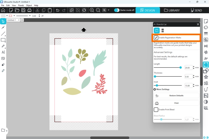 1. プリント&カットパネルを開き、トンボをオンにします。