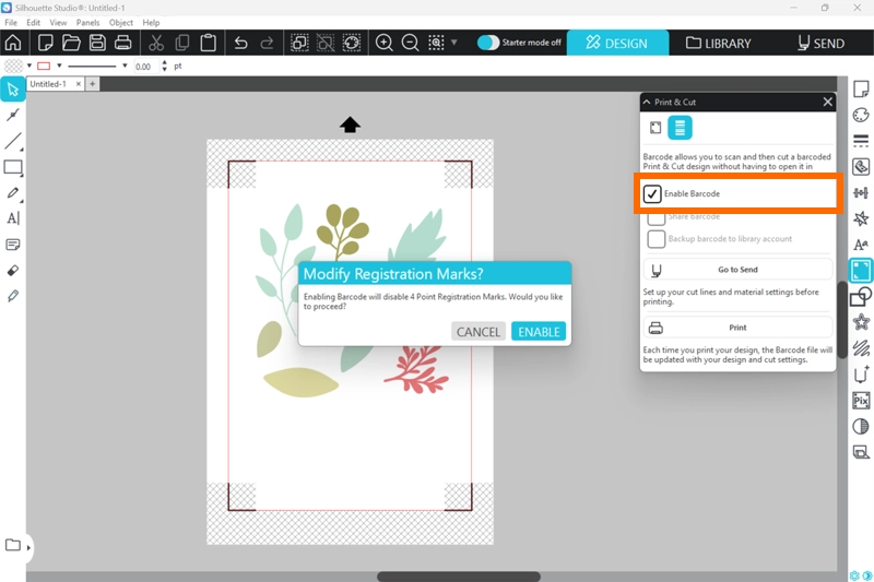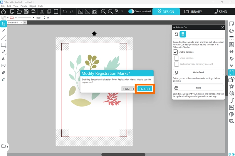 3. 「レジストレーションマークを変更しますか?」のメッセージが表示されたら[ENABLE]をクリックします。